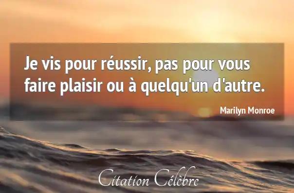 Je vis pour réussir, pas pour vous faire plaisir ou à quelqu'un d'autre.