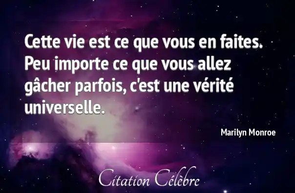 Cette vie est ce que vous en faites. Peu importe ce que vous allez gâcher parfois, c'est une vérité universelle.