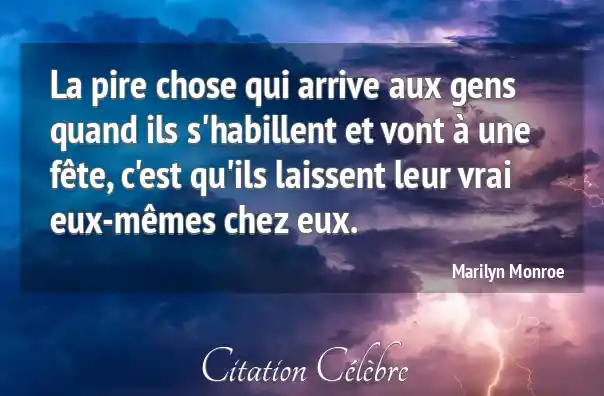 La pire chose qui arrive aux gens quand ils s'habillent et vont à une fête, c'est qu'ils laissent leur vrai eux-mêmes chez eux.