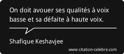 On doit avouer ses qualités à voix basse et sa défaite à haute voix.