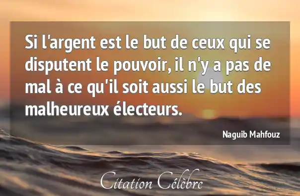 Si l'argent est le but de ceux qui se disputent le pouvoir, il n'y a pas de mal à ce qu'il soit aussi le but des malheureux électeurs.