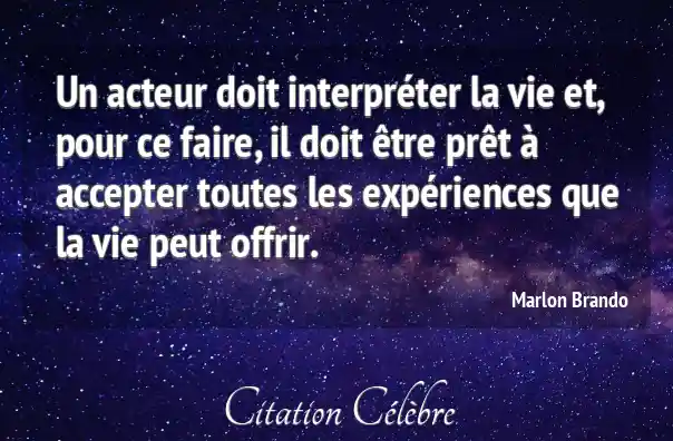 Un acteur doit interpréter la vie et, pour ce faire, il doit être prêt à accepter toutes les expériences que la vie peut offrir.