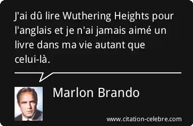 J'ai dû lire Wuthering Heights pour l'anglais et je n'ai jamais aimé un livre dans ma vie autant que celui-là.