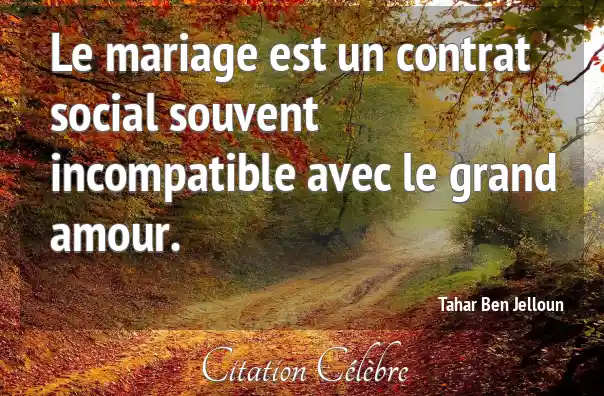 Le mariage est un contrat social souvent incompatible avec le grand amour.