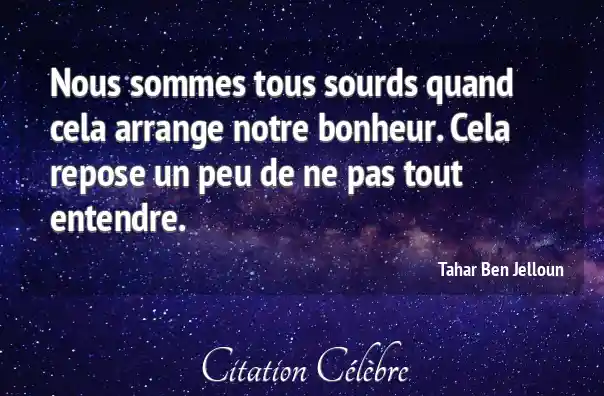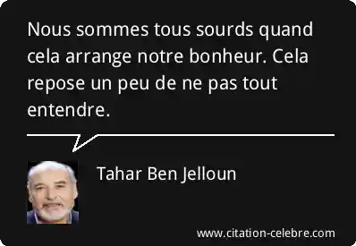 Nous sommes tous sourds quand cela arrange notre bonheur. Cela repose un peu de ne pas tout entendre.