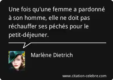 Une fois qu'une femme a pardonné à son homme, elle ne doit pas réchauffer ses péchés pour le petit-déjeuner.