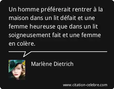 Un homme préférerait rentrer à la maison dans un lit défait et une femme heureuse que dans un lit soigneusement fait et une femme en colère.