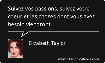 Suivez vos passions, suivez votre coeur et les choses dont vous avez besoin viendront.