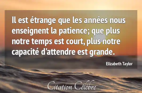 Il est étrange que les années nous enseignent la patience; que plus notre temps est court, plus notre capacité d'attendre est grande.