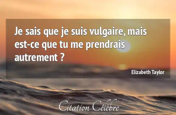 Je sais que je suis vulgaire, mais est-ce que tu me prendrais autrement ?