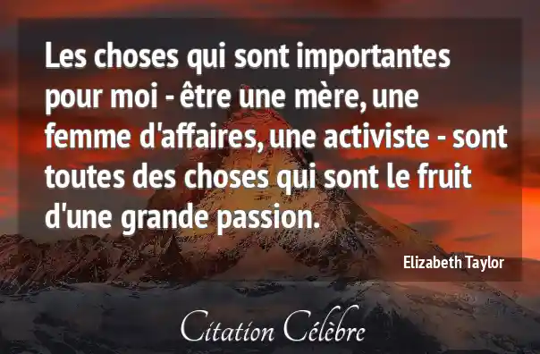 Les choses qui sont importantes pour moi - être une mère, une femme d'affaires, une activiste - sont toutes des choses qui sont le fruit d'une grande passion.