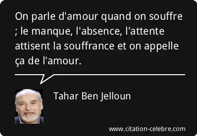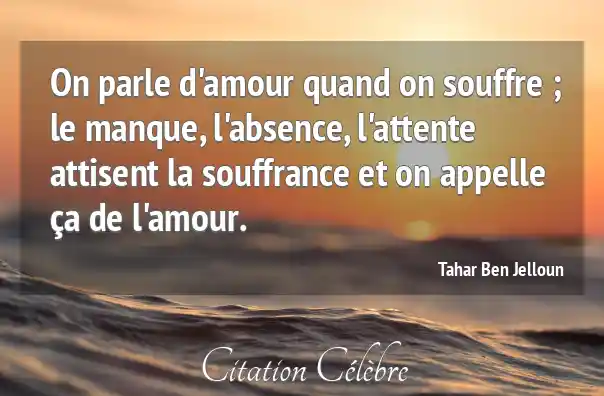 On parle d'amour quand on souffre ; le manque, l'absence, l'attente attisent la souffrance et on appelle ça de l'amour.
