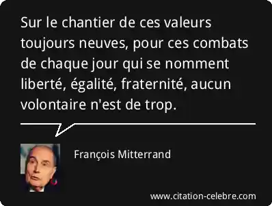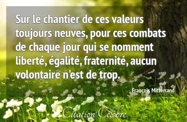Sur le chantier de ces valeurs toujours neuves, pour ces combats de chaque jour qui se nomment liberté, égalité, fraternité, aucun volontaire n'est de trop.