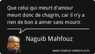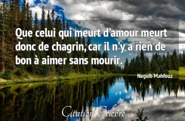Que celui qui meurt d'amour meurt donc de chagrin, car il n'y a rien de bon à aimer sans mourir.