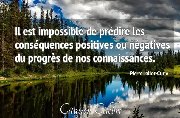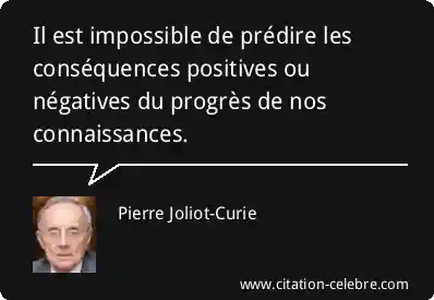 Il est impossible de prédire les conséquences positives ou négatives du progrès de nos connaissances.