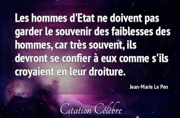 Les hommes d'Etat ne doivent pas garder le souvenir des faiblesses des hommes, car très souvent, ils devront se confier à eux comme s'ils croyaient en leur droiture.