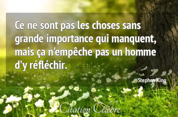 Ce ne sont pas les choses sans grande importance qui manquent, mais ça n'empêche pas un homme d'y réfléchir.