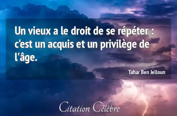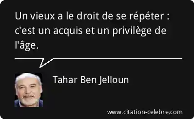 Un vieux a le droit de se répéter : c'est un acquis et un privilège de l'âge.