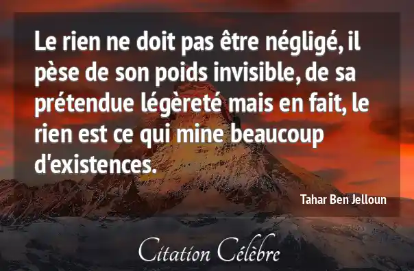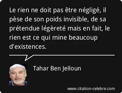 Le rien ne doit pas être négligé, il pèse de son poids invisible, de sa prétendue légèreté mais en fait, le rien est ce qui mine beaucoup d'existences.
