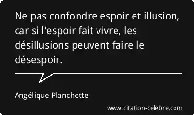 Ne pas confondre espoir et illusion, car si l'espoir fait vivre, les désillusions peuvent faire le désespoir.