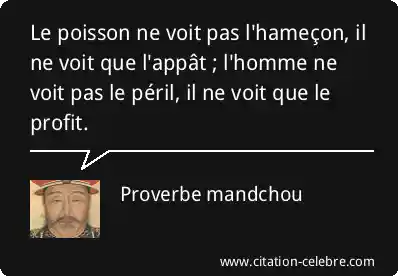 Le poisson ne voit pas l'hameçon, il ne voit que l'appât ; l'homme ne voit pas le péril, il ne voit que le profit.