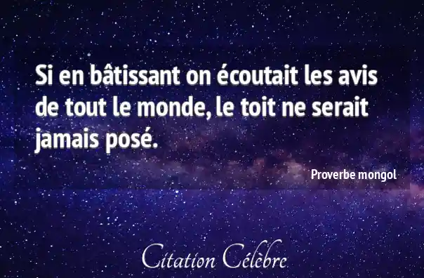 Si en bâtissant on écoutait les avis de tout le monde, le toit ne serait jamais posé.
