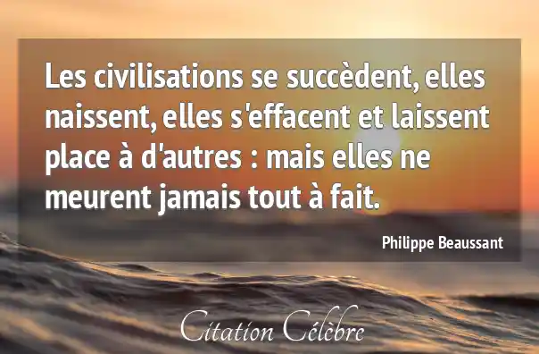 Les civilisations se succèdent, elles naissent, elles s'effacent et laissent place à d'autres : mais elles ne meurent jamais tout à fait.