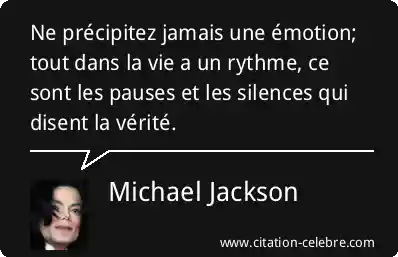 Ne précipitez jamais une émotion; tout dans la vie a un rythme, ce sont les pauses et les silences qui disent la vérité.