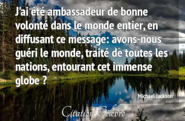 J'ai été ambassadeur de bonne volonté dans le monde entier, en diffusant ce message: avons-nous guéri le monde, traité de toutes les nations, entourant cet immense globe ?
