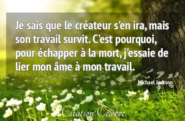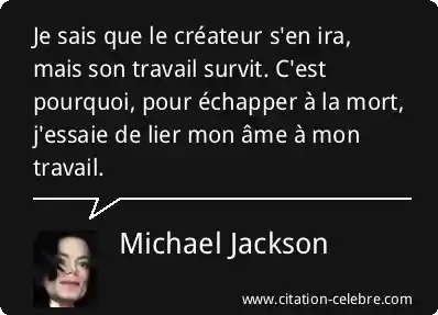 Je sais que le créateur s'en ira, mais son travail survit. C'est pourquoi, pour échapper à la mort, j'essaie de lier mon âme à mon travail.
