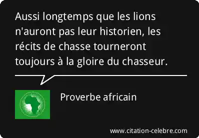 Aussi longtemps que les lions n'auront pas leur historien, les récits de chasse tourneront toujours à la gloire du chasseur.