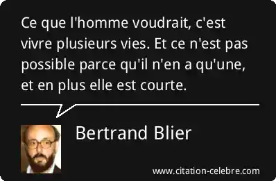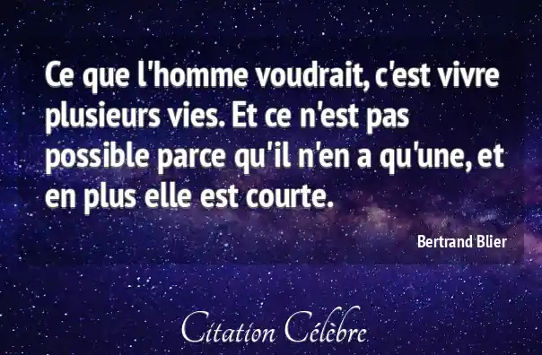 Ce que l'homme voudrait, c'est vivre plusieurs vies. Et ce n'est pas possible parce qu'il n'en a qu'une, et en plus elle est courte.