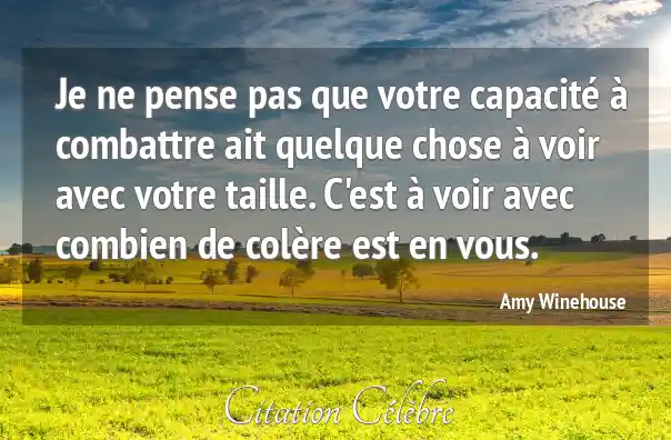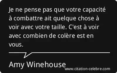 Je ne pense pas que votre capacité à combattre ait quelque chose à voir avec votre taille. C'est à voir avec combien de colère est en vous.