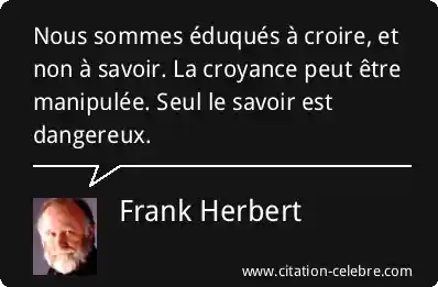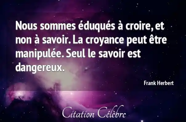 Nous sommes éduqués à croire, et non à savoir. La croyance peut être manipulée. Seul le savoir est dangereux.