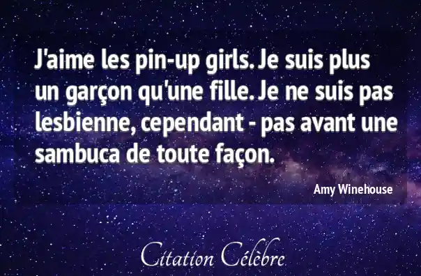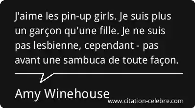 J'aime les pin-up girls. Je suis plus un garçon qu'une fille. Je ne suis pas lesbienne, cependant - pas avant une sambuca de toute façon.