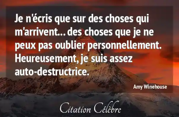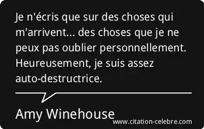 Je n'écris que sur des choses qui m'arrivent... des choses que je ne peux pas oublier personnellement. Heureusement, je suis assez auto-destructrice.