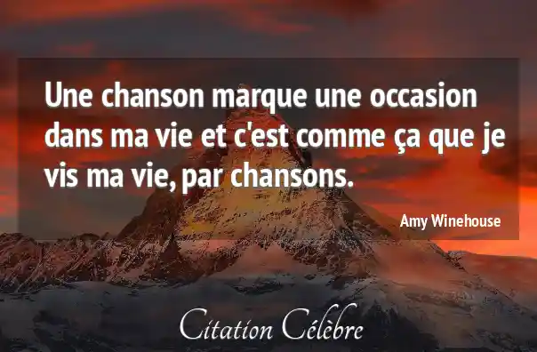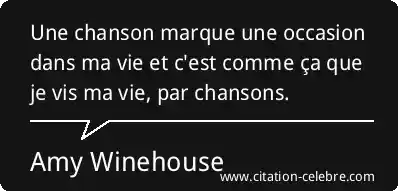 Une chanson marque une occasion dans ma vie et c'est comme ça que je vis ma vie, par chansons.
