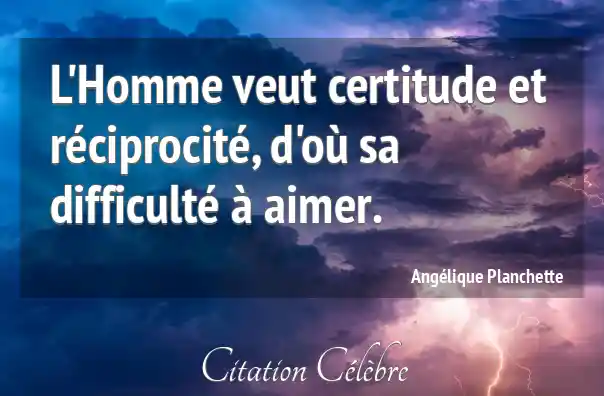 L'Homme veut certitude et réciprocité, d'où sa difficulté à aimer.