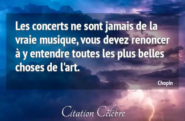 Les concerts ne sont jamais de la vraie musique, vous devez renoncer à y entendre toutes les plus belles choses de l'art.