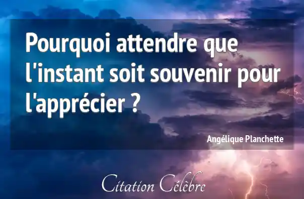 Pourquoi attendre que l'instant soit souvenir pour l'apprécier ?