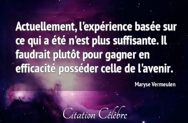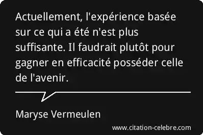 Actuellement, l'expérience basée sur ce qui a été n'est plus suffisante. Il faudrait plutôt pour gagner en efficacité posséder celle de l'avenir.