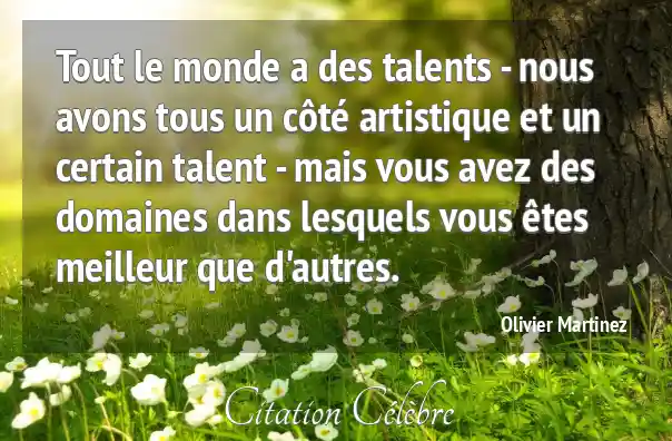 Voici comment je définis le talent : un don que Dieu nous a fait en secret, et que nous révélons sans le savoir.