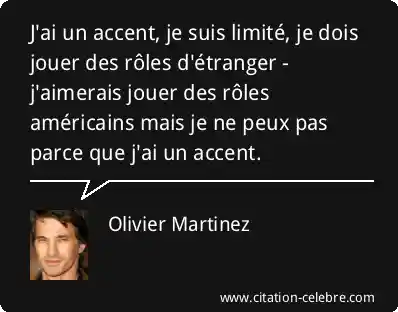 J'ai un accent, je suis limité, je dois jouer des rôles d'étranger - j'aimerais jouer des rôles américains mais je ne peux pas parce que j'ai un accent.