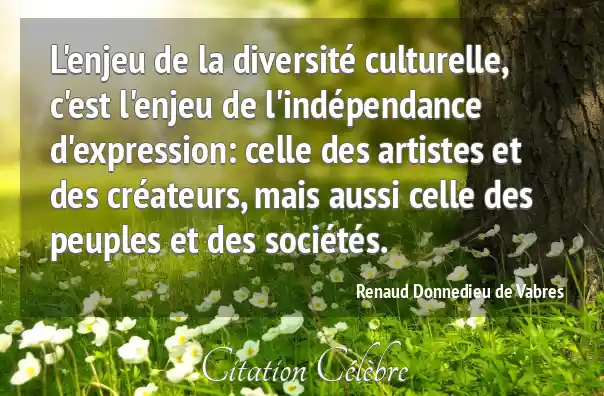 L'enjeu de la diversité culturelle, c'est l'enjeu de l'indépendance d'expression: celle des artistes et des créateurs, mais aussi celle des peuples et des sociétés.