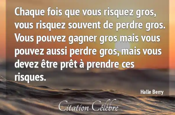 Chaque fois que vous risquez gros, vous risquez souvent de perdre gros. Vous pouvez gagner gros mais vous pouvez aussi perdre gros, mais vous devez être prêt à prendre ces risques.