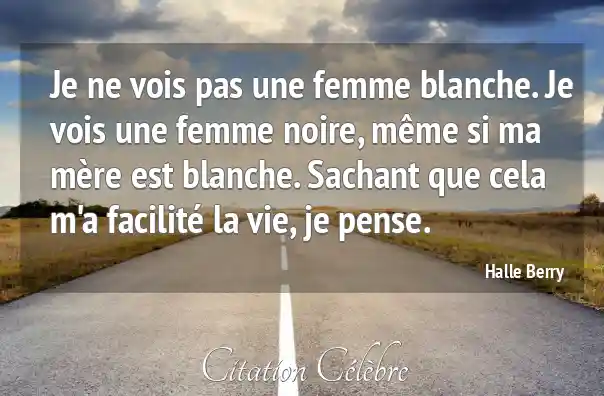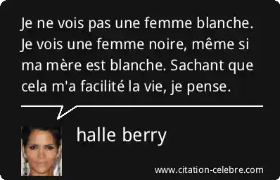Je ne vois pas une femme blanche. Je vois une femme noire, même si ma mère est blanche. Sachant que cela m'a facilité la vie, je pense.