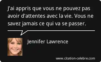 J'ai appris que vous ne pouvez pas avoir d'attentes avec la vie. Vous ne savez jamais ce qui va se passer.