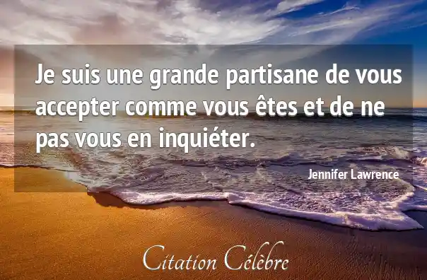 Je suis une grande partisane de vous accepter comme vous êtes et de ne pas vous en inquiéter.