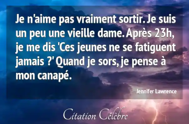 Je n'aime pas vraiment sortir. Je suis un peu une vieille dame. Après 23h, je me dis 'Ces jeunes ne se fatiguent jamais ?' Quand je sors, je pense à mon canapé.