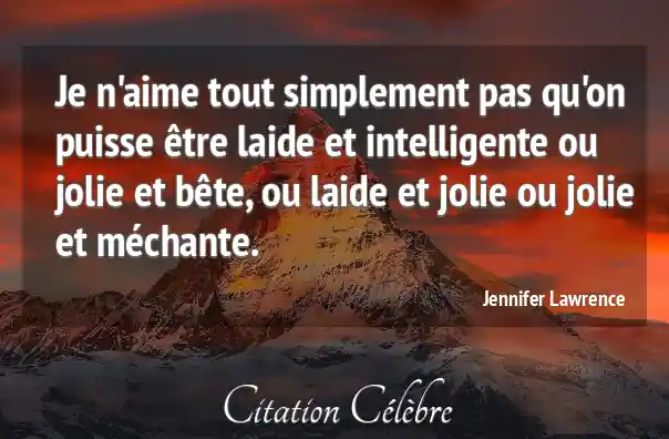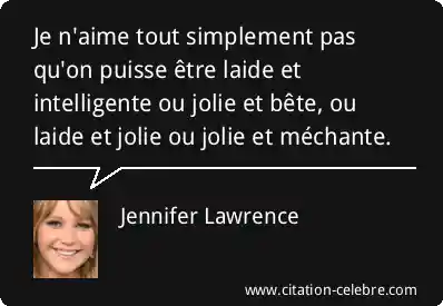 Je n'aime tout simplement pas qu'on puisse être laide et intelligente ou jolie et bête, ou laide et jolie ou jolie et méchante.
